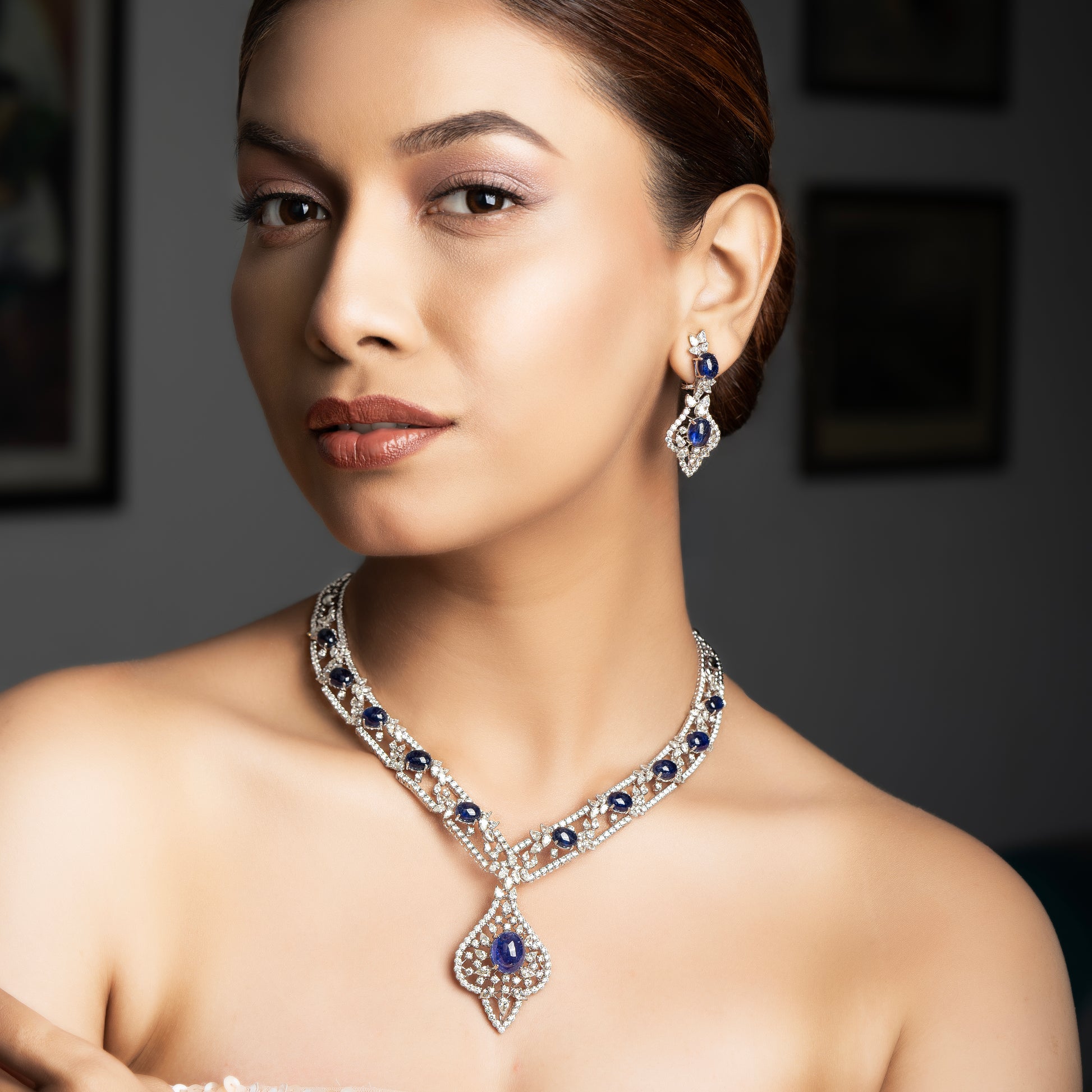 A royal fusion of deep blue sapphires and radiant diamonds, gracefully intertwined in an ornate design that embodies timeless sophistication.